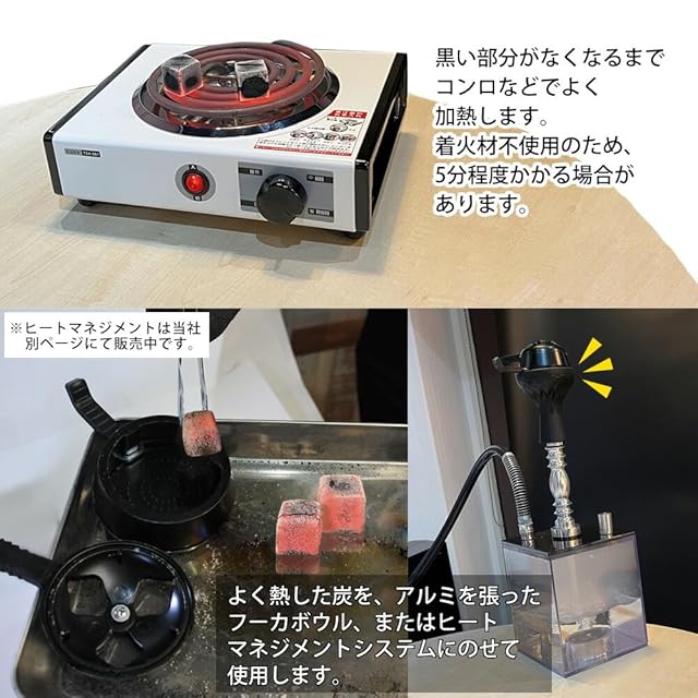 着火剤などは一切使用していない100%ココナッツの天然仕様なので嫌な臭いがしにくくシーシャにピッタリ!