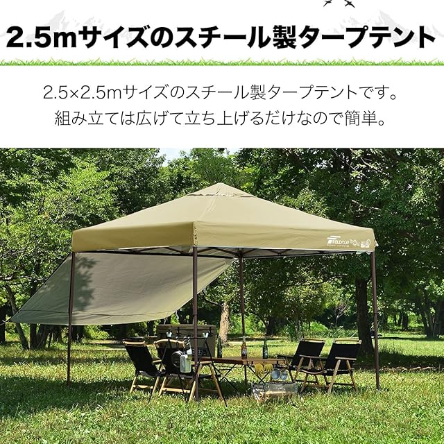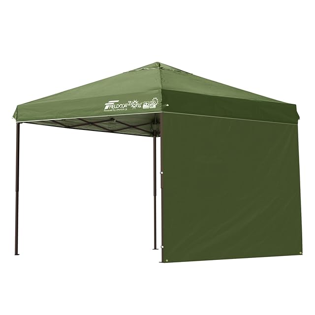FIELDOOR 組立て簡単!! ワンタッチタープテント G03 スチールフレーム 専用横幕/サイドシート1枚付属 風抜けベンチレーション 高耐水加工&シルバーUVカットコーティング 紫外線カット 遮熱 [カーキxブラウンフレーム/2.5m]