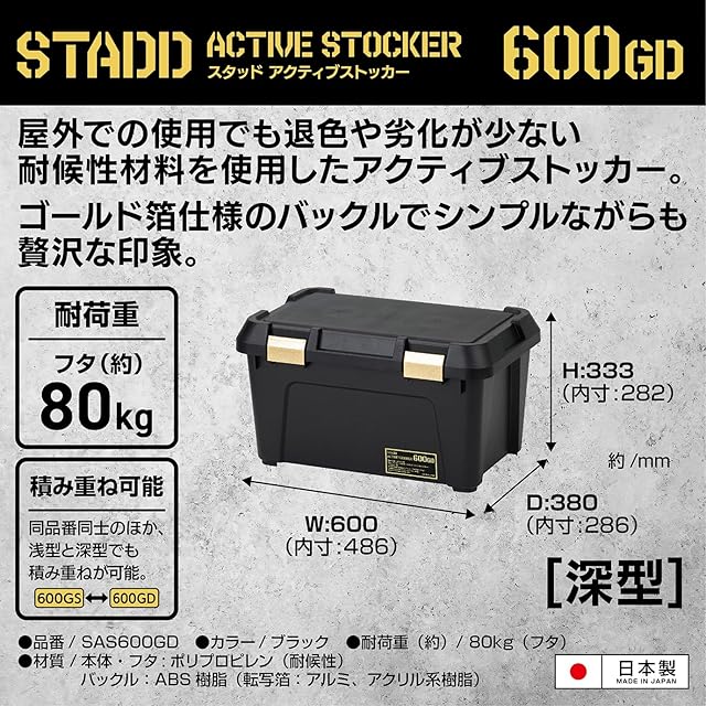 JEJアステージ(JEJ Astage) 劣化が少ない 収納ボックス 日本製 耐荷重 80kg 積み重ね 耐候性材料使用 [スタッド アクティブストッカー 600GD] 幅60×奥行38×高さ33cm アウトドア キャンプ 踏台 車載
