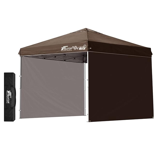 FIELDOOR 組立て簡単!! ワンタッチタープテント G03 スチールフレーム 専用横幕/サイドシート2枚付属 風抜けベンチレーション 高耐水加工&シルバーUVカットコーティング 紫外線カット 遮熱 [ダークブラウン/2.5m]