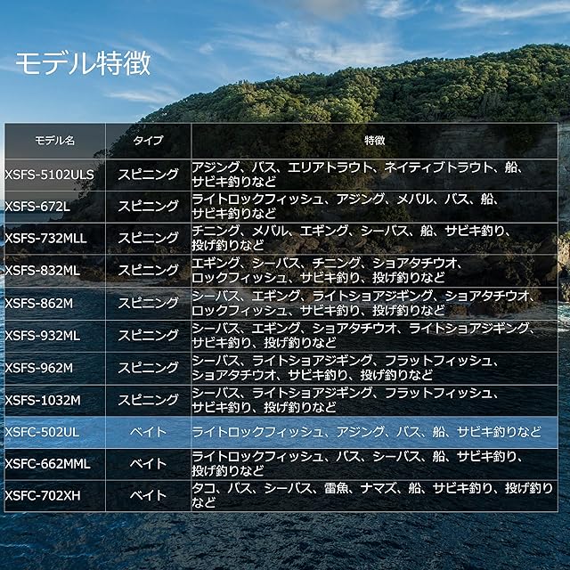 使用可能な釣法:エギング チニング / 主なターゲット:アイナメ アオリイカ サクラマス スミイカ サバ タチウオ ロックフィッシュ