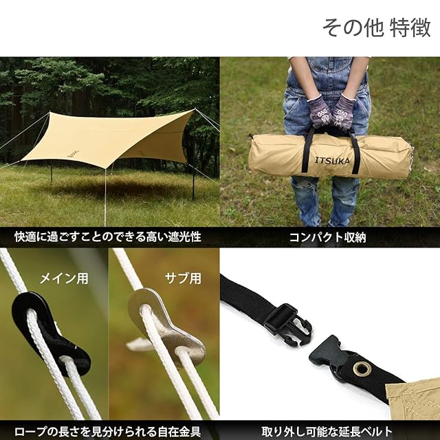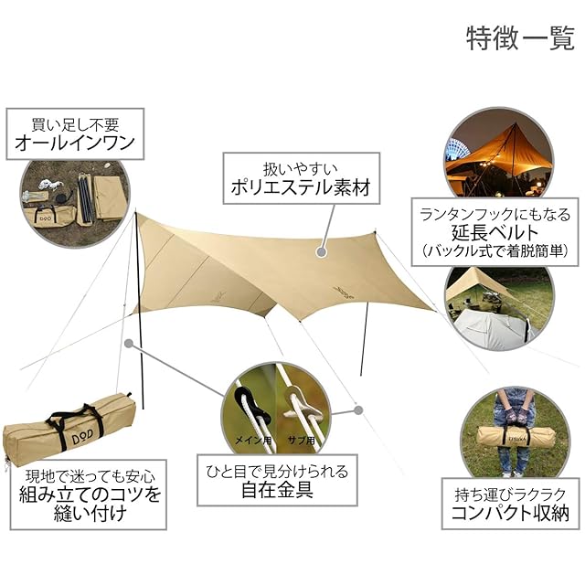 DOD(ディーオーディー) いつかのタープ はじめてでも扱いやすい ベーシックな ヘキサタープ waterproof タン Medium オールインワン 延長テープ 標準付属 UV加工済 TT5-631-TN