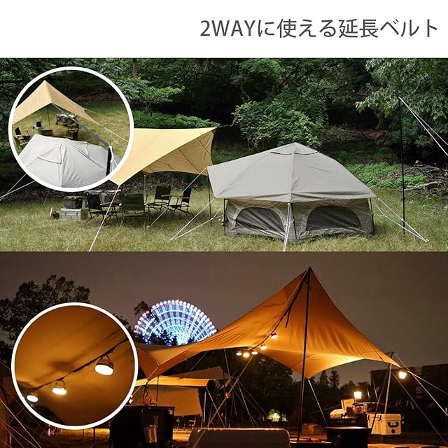 付属品:ペグ×8、ロープ: 4(黒自在)、4(シルバー自在)、タイベルト、ポール×2、延長テープ、キャリーバッグ