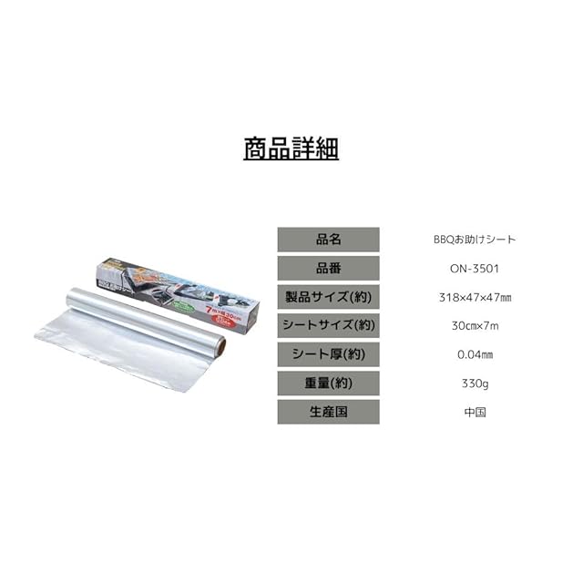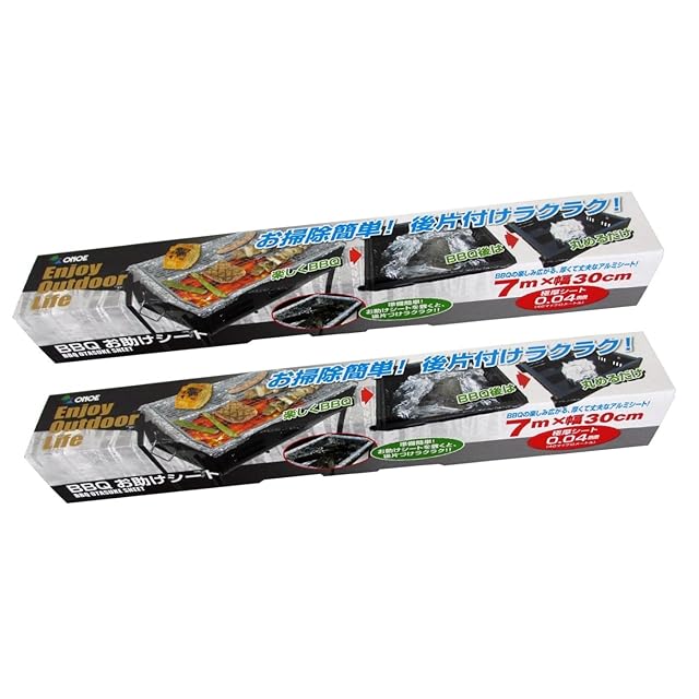 尾上製作所(ONOE) 2本セットBBQお助けシート ONー3501 [極厚アルミシート コンロの耐久性向上 後片付け簡単 網に巻いて簡易プレートに バーベキュー キャンプ 幅30cm 厚さ0.04mm アルミホイル]