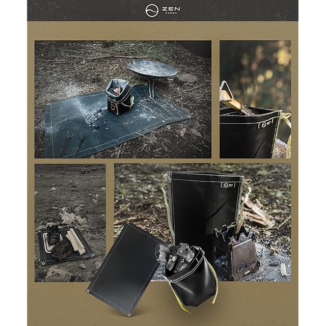 ZEN Camps 火消し袋 アッシュキャリー 炭処理袋 炭消し袋 炭袋 防水 自立 Ash Carry キャンプ 耐熱性 難燃性 コンパクト 大容量【日本ブランド】 (セット品(アッシュキャリーS & 焚き火シート50*50cm)