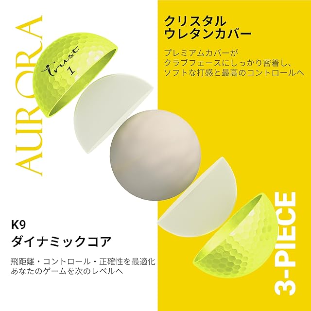 TrustトラストゴルフボールAurora(オーロラ) 被らない 目立つ 飛ぶ 曲がらない 止まるクリスタルウレタンカバー3ピースリアクティブコア(ツアー系) 1ダース(12個入り) オーロライエロー