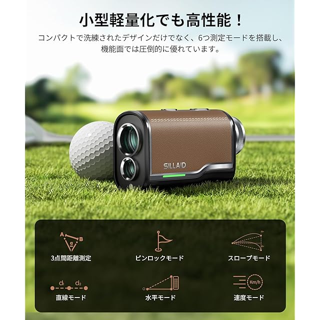 SILLAID ゴルフレーザー距離計 mini VM2 赤緑色表示 OLED 3点間距離 最速0.04S測定 高透過レンズ 6倍望遠 1093yd対応 専用ケース付き(ブラウン)