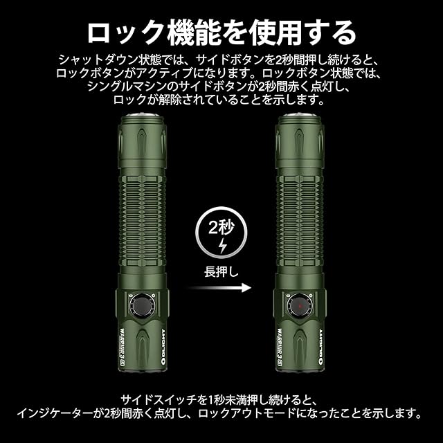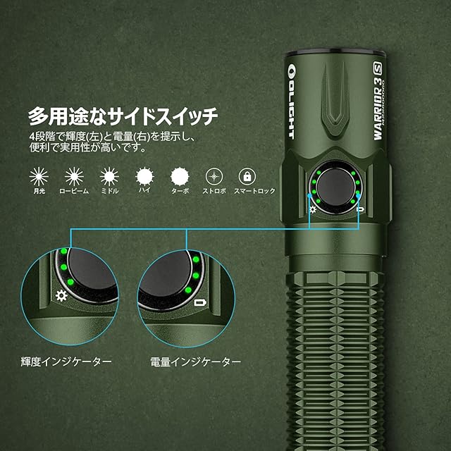 OLIGHT(オーライト) WARRIOR 3S 懐中電灯 2300ルーメン タクティカルライト ledフラッシュライト 強力 最強 ワークライト アウトドア PSE認証 IPX8防水 充電式 ハンディライト 高輝度 耐衝撃(グリーン)