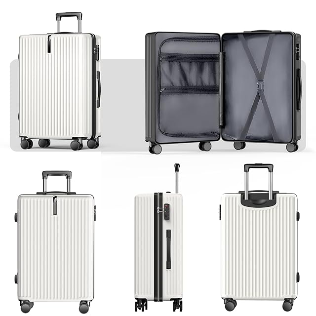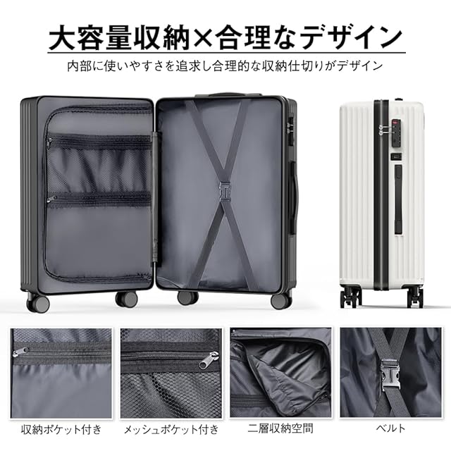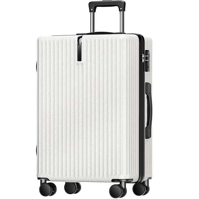 [Atzone Ginza] スーツケース 大容量 キャリーケース 超軽量 USB充電機能付き 隠しフック機能 トラベルバッグ 耐衝撃 静音 ダブルキャスター TSAローク搭載 ファスナータイプ キャリーバッグ 人気 旅行 ビジネス 出張 入院 (ホワイト, Lサイズ /7泊~長期旅行)