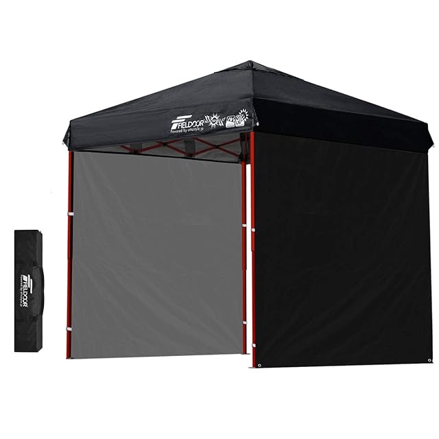 FIELDOOR 組立て簡単!! ワンタッチタープテント G03 スチールフレーム 専用横幕/サイドシート2枚付属 風抜けベンチレーション 高耐水加工&シルバーUVカットコーティング 紫外線カット 遮熱 [ブラックxレッドフレーム/2.0m]