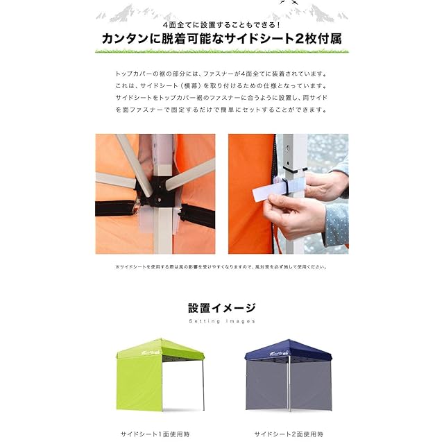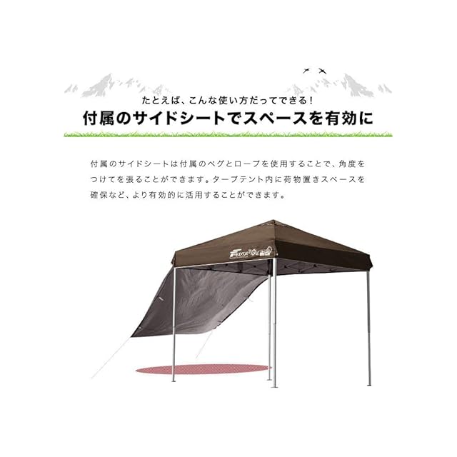 ✅【商品詳細】 サイズ: 組立時 : (約)2.0m×2.0m×1.57m / 2.29m / 2.37m 収納時 : (約)22cm×22cm×114cm 重量: (約)11kg 材質: フレーム : スチール 生地 : ポリエステル 耐水圧: 2,000mm以上 付属品: ・専用サイドシート(2枚) ・ロープ ・ペグ ・収納バッグ ・取扱説明書