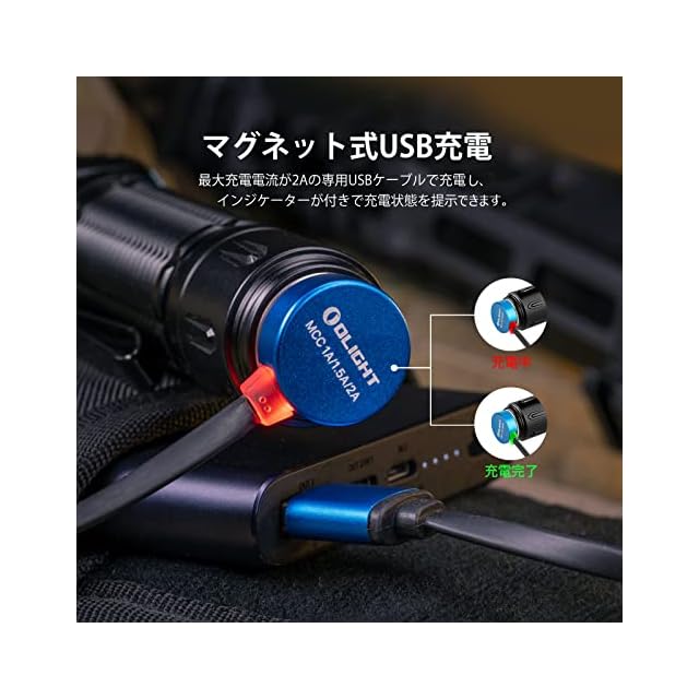 [大容量電池/専用充電] WARRIOR 3Sは電量指示機能が付き、大容量専用充電式電池を備えて、月光モードでは55日間連続使用可能です。専用充電ケーブルを付属し、最大2Aの電流で充電効率が大幅に向上します