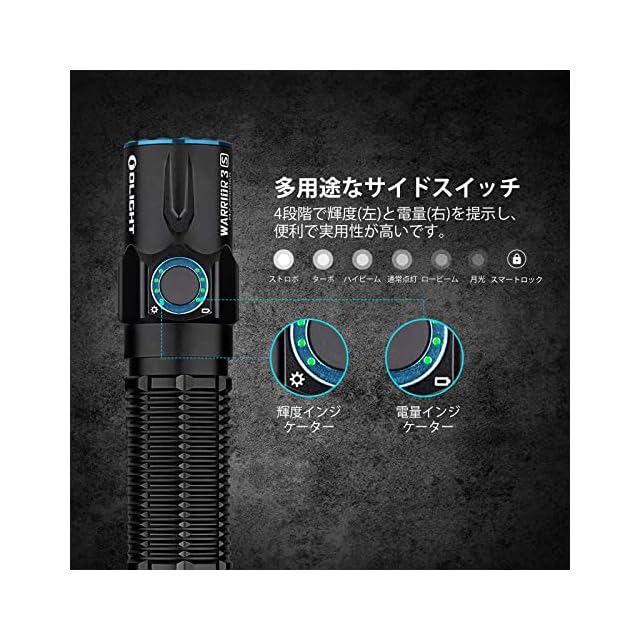 [2300ルーメン高輝度/300メートル射程] Warrior 3Sは高性能なLEDを搭載し、2300ルーメンまでの高輝度を備え、300メートルのホワイトビームを出力します。 高視認性の光束は防災、作業、旅行、捜索などを対応できます