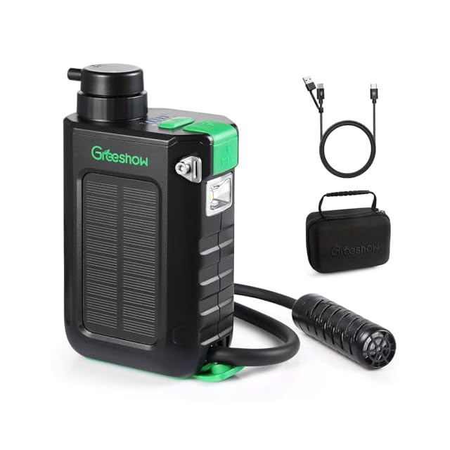 Greeshow 携帯浄水器 災害 防災安全協会推奨品認証 アウトドア 電動 【日本正規品】 手回し ソーラー充電機能 濾過器 飲み水 LEDライト SOSモード スマホ充電機能 防災グッズ フィルター交換可能 キャンプ/登山/地震/災害用 軽量 PSE技術適合 GS-2811