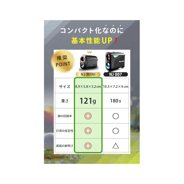 【精度の安定性の追求】NJ MINIシリーズは独自のアルゴリズム×計測スピード×旗の認識率向上により最も大きな不満の1つでもある旗の認識と測る度に数値がバラツくことを改善することにより安定性がUP
