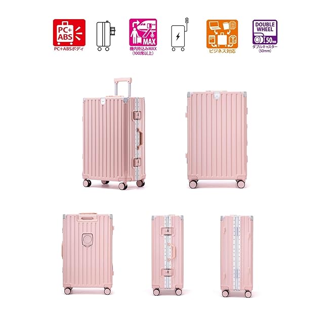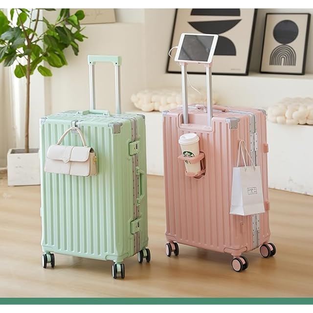 [Yuweijie] スーツケース アルミフレームタイプ キャリーケース 機内持込可 s/m/l/xlサイズ 5泊6日 ピンク バッグかけフック付き 多機能 キャリーバッグ カップホルダー付き スマホホルダー付き 軽量大型 大容量 耐衝撃 人気 おしゃれ 静音 360度回転 ダブルキャスター 修学旅行 国内旅行 (Lサイズ 4-6泊 70リットル)
