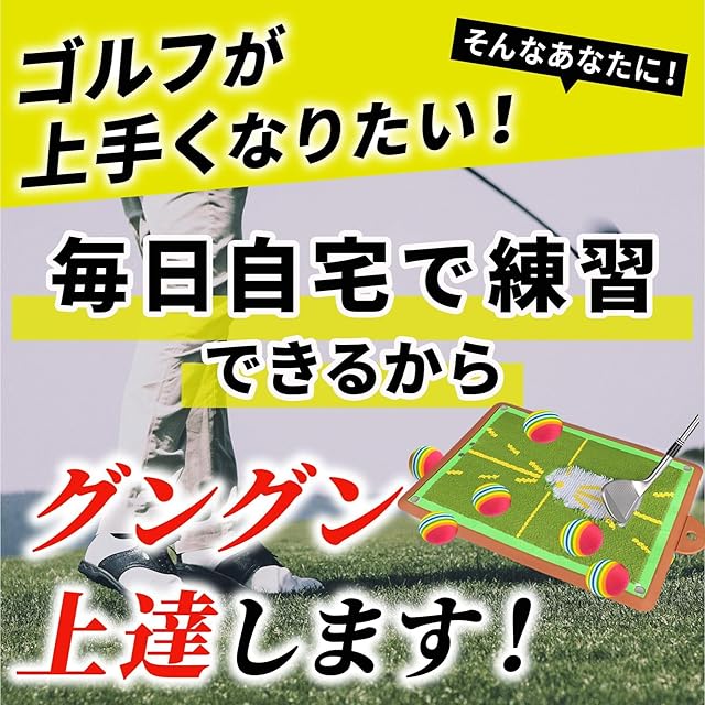 ✅【衝撃吸収!自宅の床を傷付けない、厚みのある芝マット】芝風マットの裏面には滑り止め加工を施し、フローリングの上でショットしてもマットがズレにくい仕様。人工芝の下には厚みのあるスポンジを使用し、人工芝とスポンジによる2層構造により打った際の衝撃を吸収しやすい仕様。