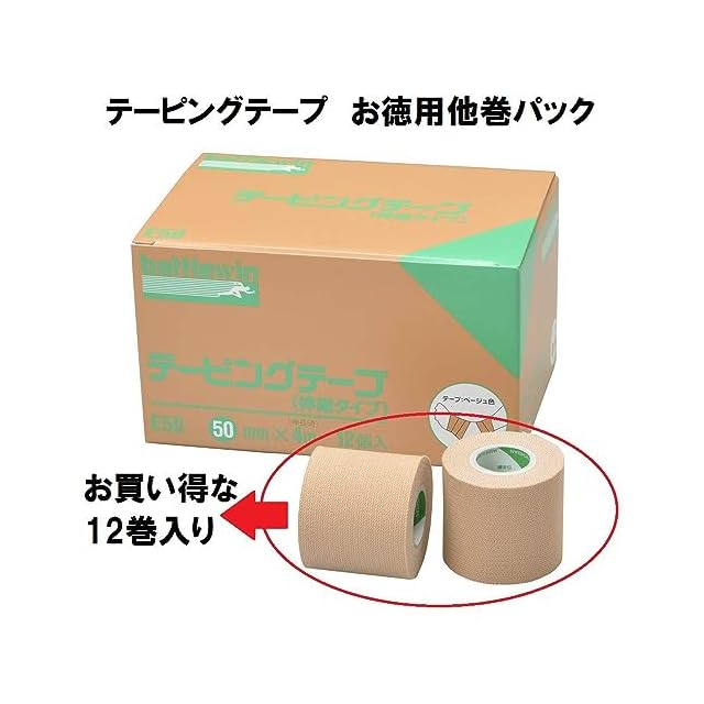 ニチバン バトルウィンテーピングテープ 伸縮タイプ 50mm幅 4m巻き(伸長時) 12巻入り 1 個
