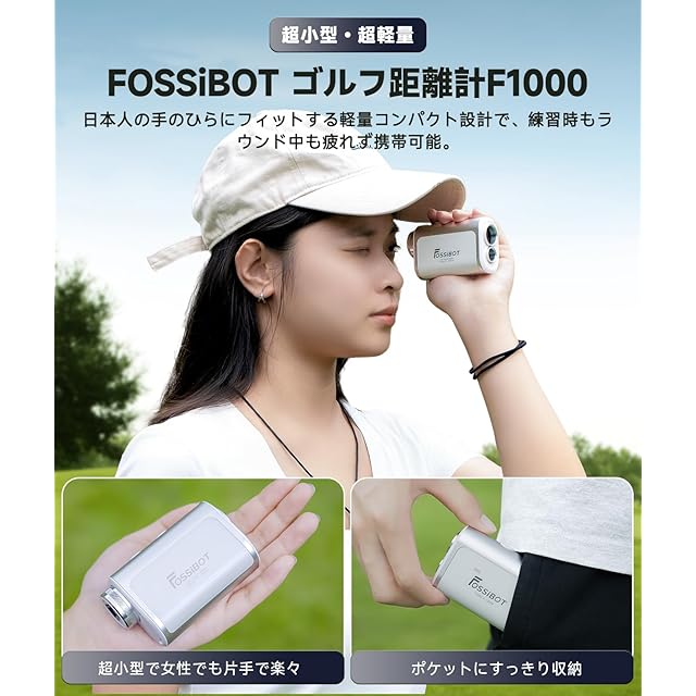 【小さい!速い!見やすい!】【2025年】FOSSiBOT F1000 ゴルフレーザー距離計 3点間距離測定 LCD黒表示 0.02s測定 光学6.3倍望遠 高透過レンズ 1000m/1093yd対応 マグネット Ultra-mini ゴルフ 距離計 ミニ 超軽量 IP54防塵防水 ピンロック スロープモード 競技モード 超小型 距離測定器 高低差 手ブレ補正 充電式 専用ケース付き (ホワイト)
