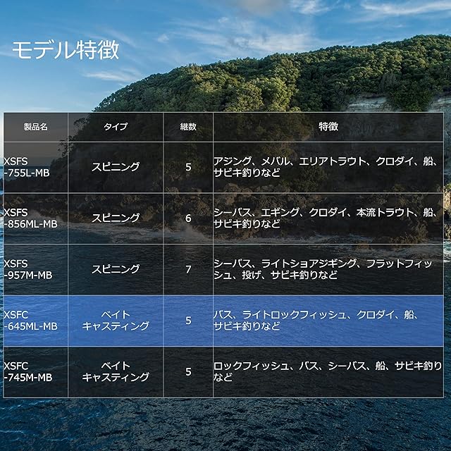 全長(ft/cm)8'6"/259.0●仕舞(cm)133●標準自重(g)130●先径(mm)1.6●ルアー(g)5 - 40●フロロカーボンライン(lb)8 - 16●PEライン(号)0.8 - 2●パワーM●テーパー/アクションRF●使用材料カーボン98%,グラス2%