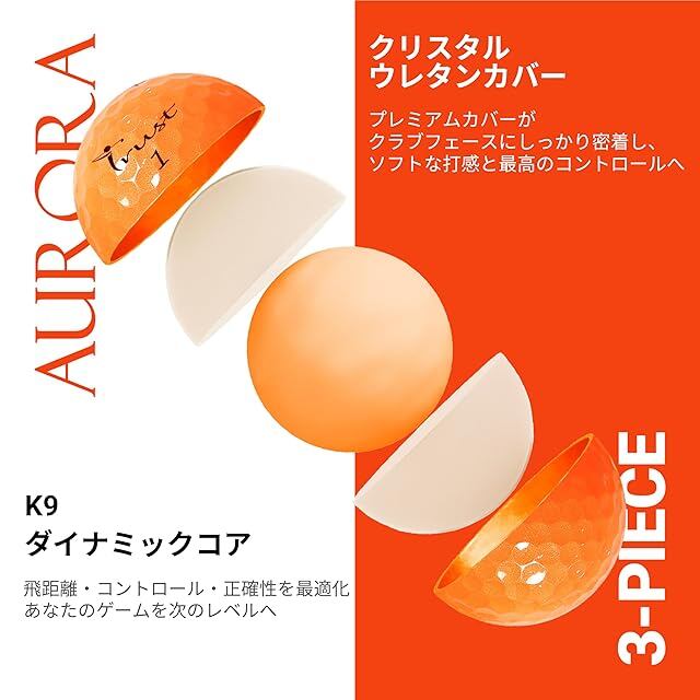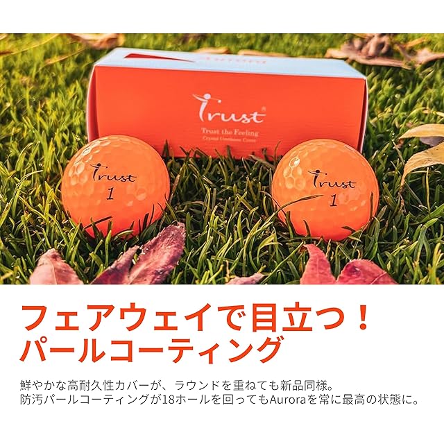 TrustトラストゴルフボールAurora(オーロラ) 被らない 目立つ 飛ぶ 曲がらない 止まるクリスタルウレタンカバー3ピースリアクティブコア(ツアー系) 4ダース(48個入り) オーロラオレンジ