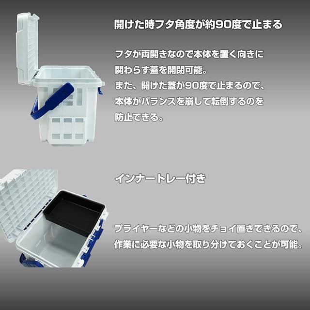 プライヤーなどの小物をチョイ置きできるインナートレー付き