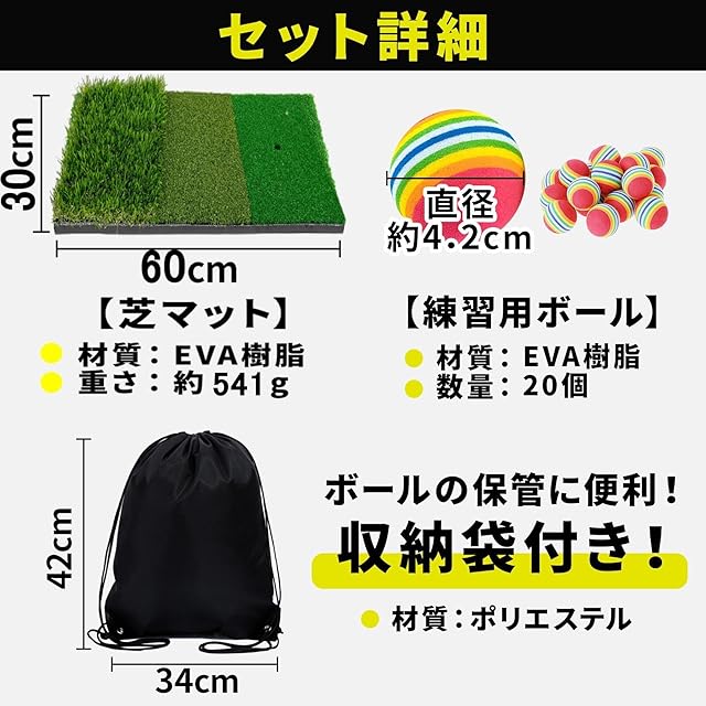 Gavit ゴルフ練習マット アプローチ練習器具 室内 トレーニング 芝風マット EVAボール 20個 収納袋付き 3way 30-60cm