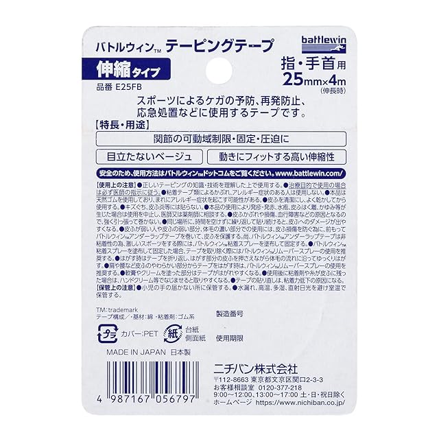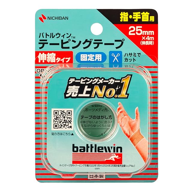 ニチバン バトルウィンテーピングテープ 伸縮タイプ 25mm幅 4m巻き(伸長時) 1巻