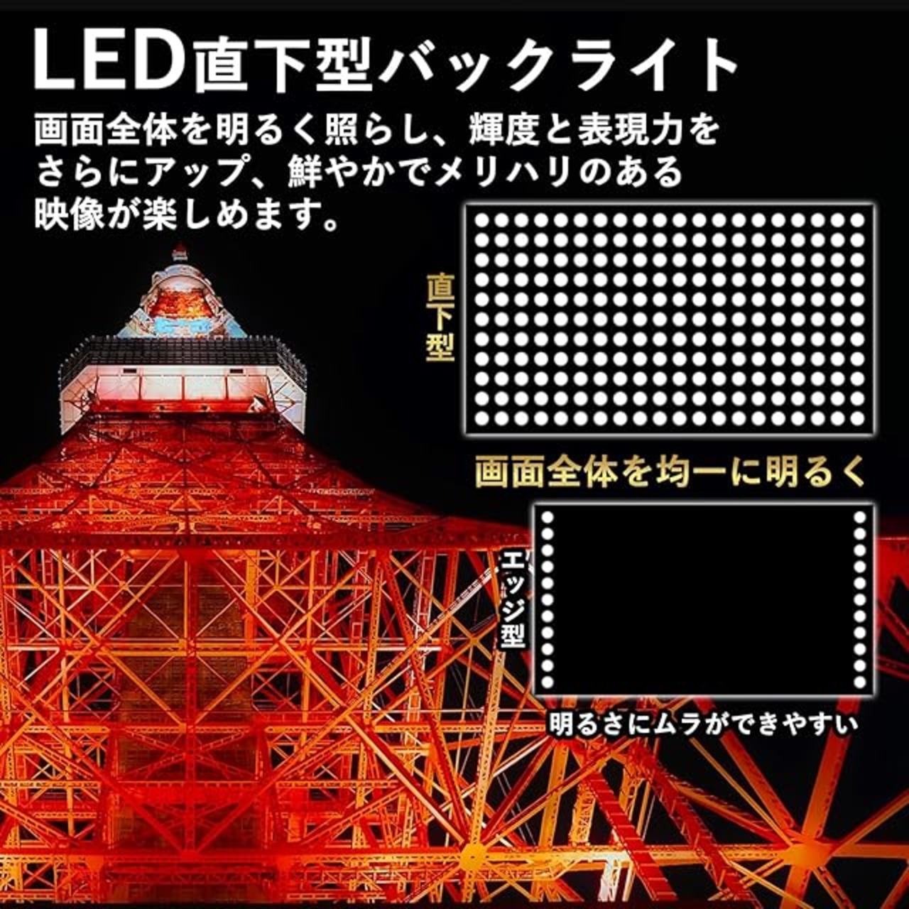 ✅【VAパネル+直下型LEDバックライト】コントラスト比が高いVAパネルで、輝く光から漆黒の闇まで、明暗をより鮮やかに、より自然に表現します。さらに、直下型LEDバックライトで画面全体を明るく照らし、輝度と表現力をさらにアップ、鮮やかでメリハリのある映像が楽しめます。