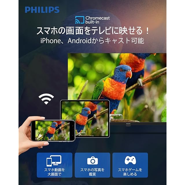 Philipsチューナーレステレビは「地上波などのテレビ番組は見なくなった」「YouTubeやNETFLIX、primevieoなどをスマホで見てる」そんな方へオススメ、アンテナ接続不要のGoogle TV搭載チューナーレステレビ。さまざまなコンテンツに大画面で楽しめます。チューナーレステレビ 32V型は地上波、BS/110℃Sのチューナーは付いておりません。地上波、BS/110℃Sをご覧になる時は別途外付けのチューナーが必要です。