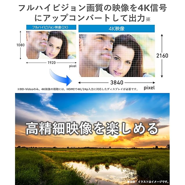 4K対応テレビでもフルHDテレビでも高画質映像が楽しめる4Kアップコンバート出力対応、3D、1080/24p出力、Deep Color対応