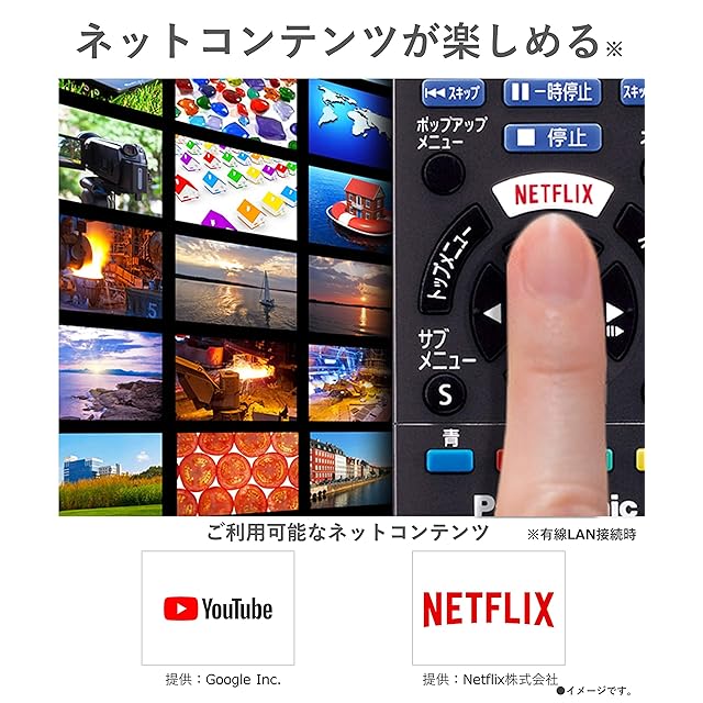 ネットワーク機能対応でディーガの録画番組やインターネット動画が楽しめるNETFLIX、YouTube、お部屋ジャンプリンク