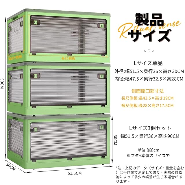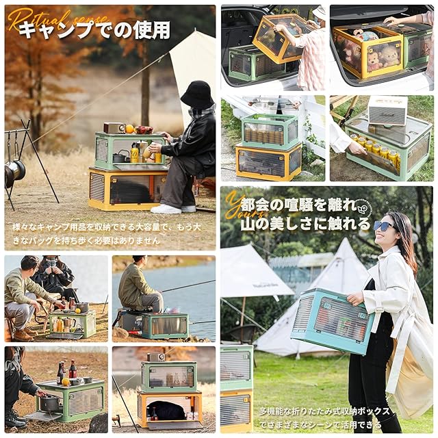 【組立簡単▪積み重ね】折りたたみ式なので、ツールなしで簡単に組み立てます。使用しないときは折りたたんで収納できます(高さ7cm)、車内や室内のちょっとした隙間に置くことができます。溝が付いているので、積み重ねて使用することで、効率よく収納スペースが活用できる収納ボックスです。側面から物が取られる、何段が積まれていても箱を運んで物を取る必要がありません。側面扉から開けて物を取りやすい、時間もかかりません。