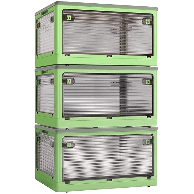 X XUNTAO【 収納ボックス 折りたたみ】蓋付き 積み重ね 全方向から取り出せる 3個セット 収納ケース 衣類 布団 小物 収納 折り畳み コンテナ ボックス 大型 プラスチック キャスター付き おしゃれ 多機能 防塵 防カビ 防湿 無臭 半透明 厚み 強い耐荷重 大容量 家庭用 車用 複数のサイズ 各種カラー(L3個セット,51.5cm*36cm*30cm,55.6L)