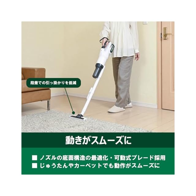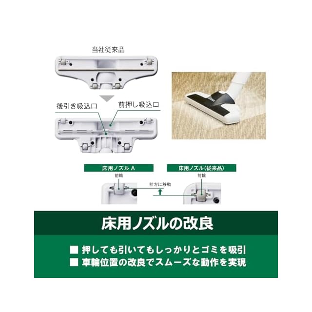 床用ノズルが生まれ変わりました。底面構造の最適化、可動式ブレードの採用によりじゅうたん・カーペットでも動作がスムーズです。