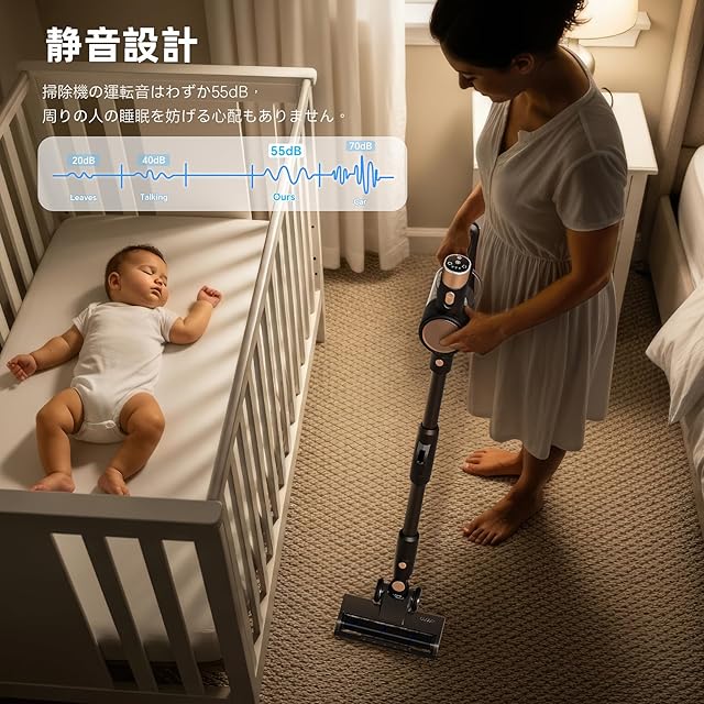 [超強吸引力&2級吸引力]ZAFROコードレス掃除機は55,000 Paの超強吸引力を持ち、家全体のすべての清掃ニーズを満たすことができます。吸引力は標準モード(30000 Pa)と強力モード(55000 Pa)に分けられる。細かいホコリ、カーペットのゴミ、ソファの隙間にたまったホコリ、アレルギーを引き起こす花粉、ダニなど、強力な力で素早く吸い込むことができる掃除機。