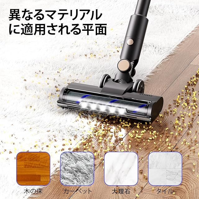[多機能ノズル&一台三役]コードレス掃除機には、用途に合わせて使用できる多機能ノズルが付属しています。広々とした空間を効率よく整理できる電動床ブラシ、ソファー、シートクッション、抱き枕などの緊密な位置の隙間ノズルを正確に吸引することができる、粉塵を集めることができるブラシ付きノズル。掃除機1台で家のあらゆる場所を簡単にカバーし、家族と清潔で快適な生活空間をもたらします。