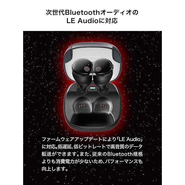 圧巻の重低音を堪能できる、φ9mm SOLID BASS HD TWSドライバー:完全ワイヤレスで重要な装着感を追求しながら、圧巻の重低音を再生する大口径ドライバーを搭載。高い密閉性により低音を逃さず、また、高精度なハイブリッドノイズキャンセリング機能を掛け合わせることで、大好きな音楽を心ゆくまで堪能することができます。ファームウェアアップデートでLE Audioに対応。