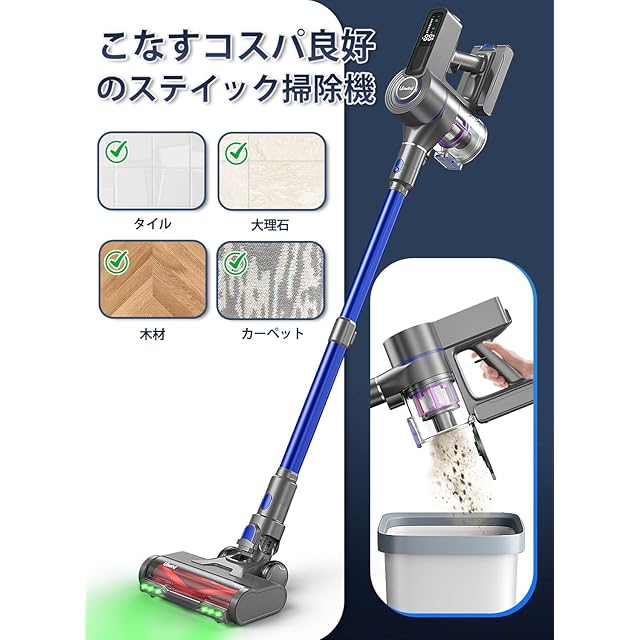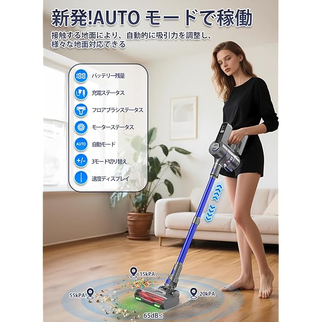 掃除機 コードレス【2025超強力吸引55000Pa】スティッククリーナー 自立式 無刷モーター AUTOモード HEPAフィルター 11段階伸縮パイプ 自転式掃灰装置 グリーンLEDライト搭載 着脱式バッテリー LEDライト付 左右180°上下90°回転 大容量バッテリー PSE認証済 3年 プレゼント 家用/車用
