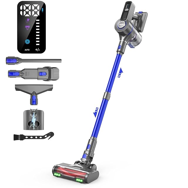 【自立式多機能設計&長時間稼働】重量はわずか1.4kg。軽量設計により片手で持ち運びが簡単。自立するデザインで、掃除中でも収納時でも便利に使えます。スペースを取らず、どこでも簡単に置け、手軽に取り出して使えます。V型ブラシ+隙間ノズル+布団用ノズル+2in1ブラシノズルが付属しており、家具の隙間、階段、フローリング、カーペット、車内など、さまざまな場所を効率的に掃除できます。11段階調整可能な伸縮パイプで高所や狭い隙間も楽に掃除可能。コードレス設計で、コードに邪魔されることなく自由に動けます。また、2200mAhの大容量リチウムイオンバッテリーにより、強力な吸引力が持続します。1回の充電で効率的に家全体の掃除が行えます。