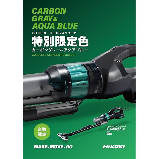 HiKOKI(ハイコーキ) 36V 2段サイクロン式 コードレス クリーナー R36DB(SC) カーボングレー&アクアブルー バッテリー・充電器別売 ハンディ スティック 掃除機 台数限定生産 R36DB(SC)(NNAB)