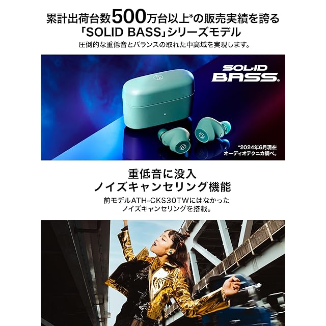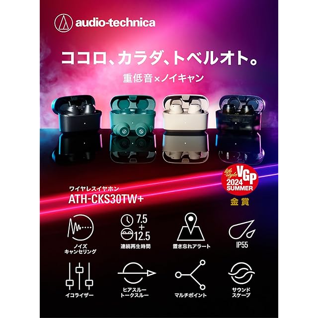 オーディオテクニカ ATH-CKS30TW+(E) ワイヤレスイヤホン bluetooth ノイズキャンセリング 重低音 最大約20時間再生 IP55 防水防塵 マルチポイント対応 小型軽量 アプリ対応 ヒアスルー 低遅延モード 置き忘れアラート BG ライトベージュ