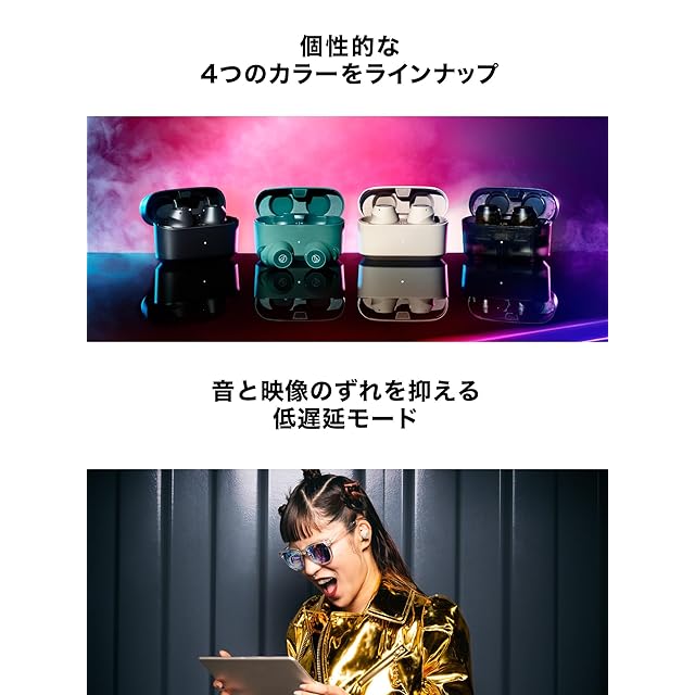 技適マーク認証済み商品(周波数帯:2.4GHz帯)圧倒的な低域表現と好きを極めるノイズキャンセリング:独自設計のφ9mm ドライバーと、空気の流れをコントロールする音響スペースとダクトを配置。圧倒的な重低音とバランスの取れた中高域を両立し、日常的にライブにいるかのような臨場感で音楽や動画を楽しむことができます。ドライバー背面に、空気の流れをコントロールするための音響スペースとダクトを配置。理想的なドライバーの動きにより、低域の量感を楽しめます。フィードフォワード式のアクティブノイズキャンセリング機能を搭載。おうちの空調音や 通勤通学時の電車やクルマの走行音など、あなたの周りのノイズを抑えて、大好きな音楽 や動画に一瞬で夢中になることができます。