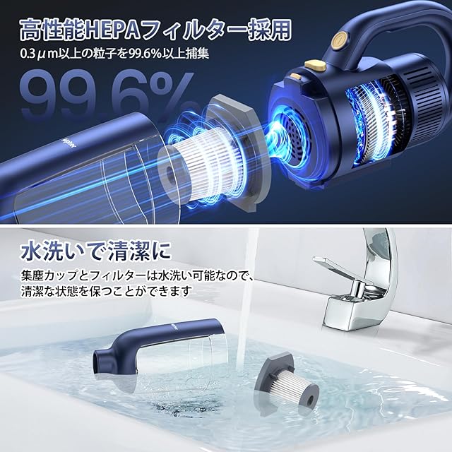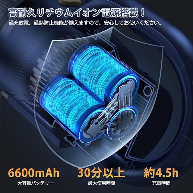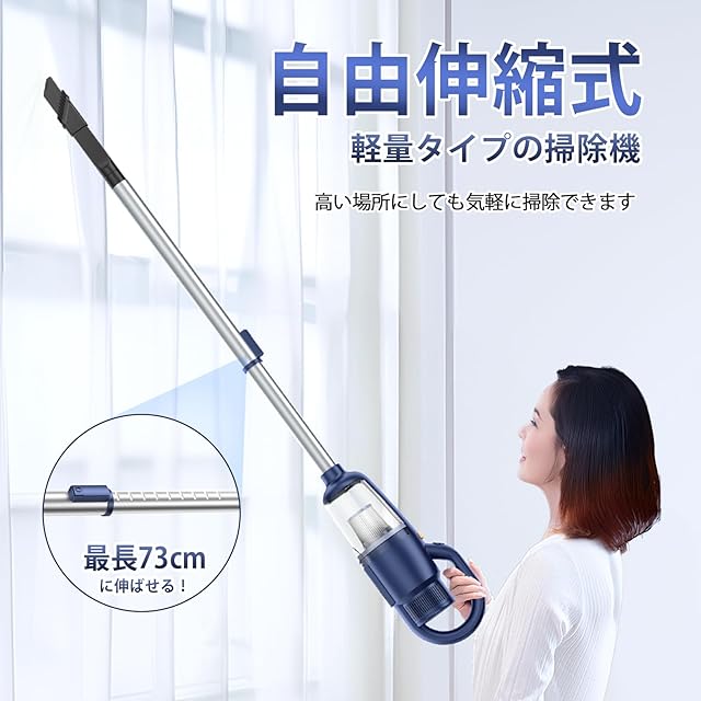 【伸縮パイプ・30分以上稼働】 伸縮可能なパイプで身長に合わせた調整が可能。高い場所の掃除も簡単にできます。2200mAhのリチウムバッテリーを搭載し、急速充電で30分以上の連続使用が可能。どんな家庭でも活躍し、バッテリーには過充電・過熱防止機能も搭載。