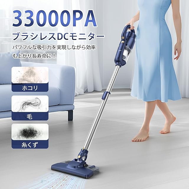 Airpher コードレス掃除機 スティック型 【新登場!33000Pa吸引力】 1.3kg軽量 30分以上連続稼働 静音設計 HEPAフィルター搭載 伸縮バイブ 壁掛け収納 床モップ対応