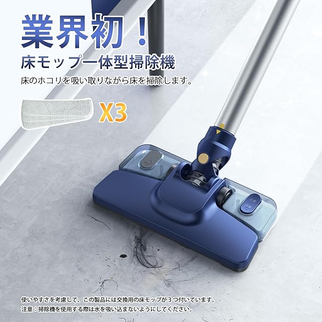 【低騒音・優れた回転性能・水洗い式】 低騒音設計で、夜間や早朝の掃除も気になりません。180°回転、90°上下回転で隅々まで楽に掃除でき、ヘッドの機動性も抜群。フィルターは取り外して簡単に水洗い可能。床モップは予備3枚付きで、いつでも清潔に保てます。