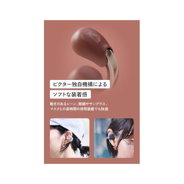 【アクセサリー感覚の軽く快適なつけ心地】 本機は、アクセサリー感覚で身に着けられるイヤーカフ型を採用。イヤホン本体には、当社独自の「フレキシブルアジャスト」機構を搭載し、耳に軽く挟んで装着する際に着脱しやすくするとともに、軽く快適な着け心地も実現。眼鏡やサングラスを着用したままでも使用でき、エクササイズやジョギングなど動きのあるシーンでも、長時間装着する場合でも、快適に使用できます。