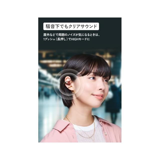 【バランスのよいクリアな高音質サウンド】 高磁力ネオジムマグネットを採用した高性能10mmドライバーユニットの搭載により、耳をふさがない開放型でありながらバランスのよいクリアな高音質サウンドと、騒音下でもしっかり聞こえるハイパワー出力を実現。エクササイズやジョギングなど、周囲の音を確認しながら音楽などのコンテンツを楽しみたいシーンをはじめ、オンライン会議やコンテンツ視聴など、さまざまなシーンで快適に”ながら聴き”が楽しめます。また、サウンドモードとして、幅広いシチュエーションで使えるオールマイティな「NORMAL」、より大きな騒音下でもしっかり聴こえやすい「HIGH」、低音寄りのバランスの「BASS」の3つのサウンドモードを搭載し、好みやシチュエーションに合わせて切り替えが可能です。
