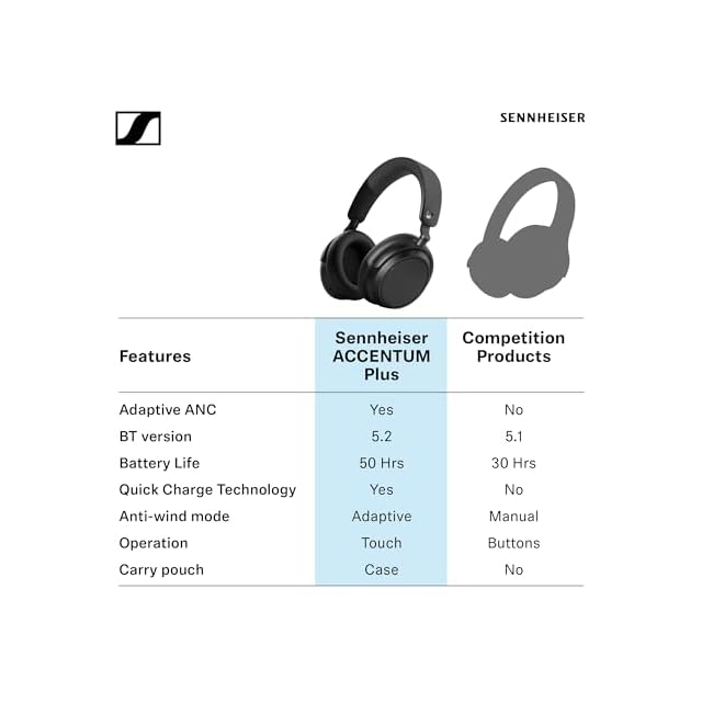 ゼンハイザー Sennheiser ワイヤレスヘッドホン ACCENTUM Plus Wireless ホワイト 高性能ドライバー 50時間再生 ハイブリッドアダプティブノイズキャンセリング タッチコントロール クリアな通話