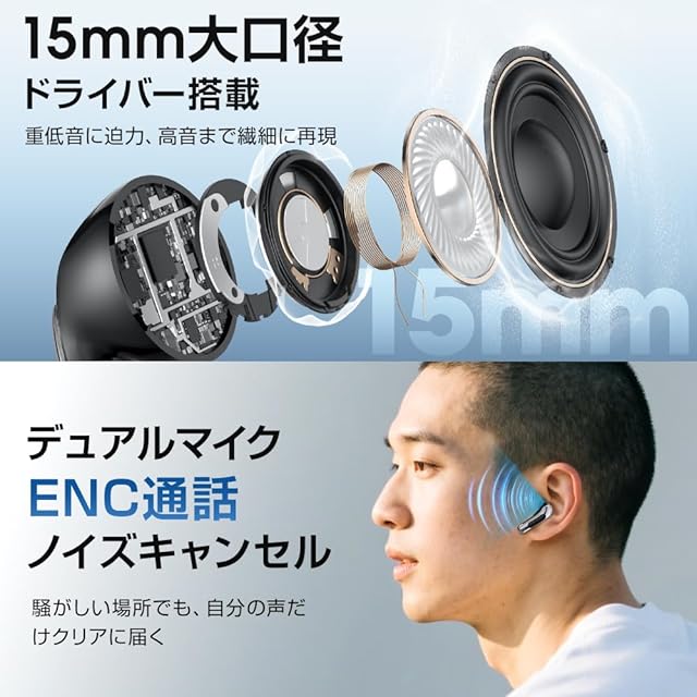 【デュアルマイク&ENC通話ノイズキャンセル】 iphone イヤホン 通話専用のデュアルマイクと最新ENC通話ノイズキャンセル技術を搭載し、周囲の騒音を効果的に除去。騒がしい駅やカフェでも、自分の声だけが相手にクリアに届きます。AAC+ENCハイブリッド通話技術で、安定した通話品質と快適な会話を実現する イヤフォン bluetooth 。テレワーク、WEB会議、ハンズフリー通話にも最適な イヤホン ワイヤレス です。